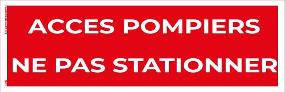 Signalétique : Texte explicite “Accès pompiers – Ne pas stationner” + pictogramme normalisé interdiction de stationner