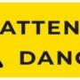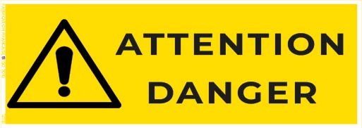 Signalétique : Texte “Attention danger” + pictogramme normalisé (triangle jaune avec point d’exclamation)