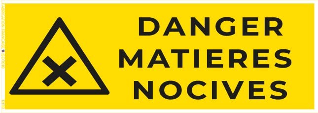 Signalétique : Texte explicite “Danger matières nocives” + pictogramme normalisé (triangle jaune avec symbole toxique ou exclamation)