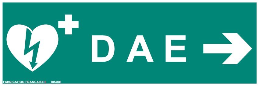 • Signalétique : Pictogramme clair du défibrillateur avec texte explicatif et flèche de direction
