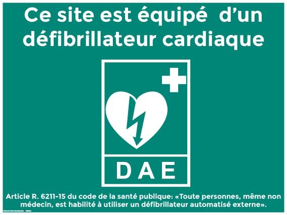Type de panneau : Signalisation – Défibrillateur Cardiaque
