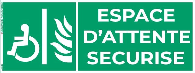 Ce panneau autocollant en vinyle adhésif “Espace d’attente sécurisé” est conçu pour indiquer clairement les zones sécurisées où les personnes peuvent patienter temporairement en cas d’incendie ou d’urgence, notamment celles qui ne peuvent pas évacuer rapidement. Fabriqué en vinyle de haute qualité, il offre une adhérence optimale, une grande durabilité et une excellente visibilité, même sur des surfaces lisses comme les portes, vitrines ou murs. Sa signalétique normalisée assure un repérage rapide et conforme aux normes de sécurité incendie et ERP.