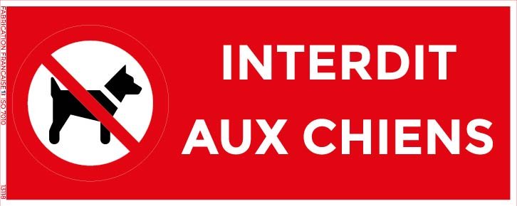 Signalétique : Texte explicite “Interdit aux chiens” + pictogramme normalisé