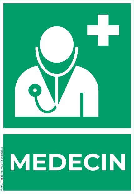 Ce panneau permet de localiser rapidement un poste médical ou cabinet de médecin, essentiel pour fournir une assistance immédiate en cas de malaise, blessure ou urgence médicale. Il contribue à améliorer l’organisation des soins et la sécurité des occupants.
