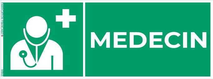 Ce panneau permet de localiser rapidement un poste médical ou cabinet de médecin, essentiel pour fournir une assistance immédiate en cas de malaise, blessure ou urgence médicale. Il contribue à améliorer l’organisation des soins et la sécurité des occupants.