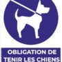 • Signalétique : Texte “Obligation de tenir les chiens en laisse” + pictogramme normalisé (rond bleu avec chien en laisse)