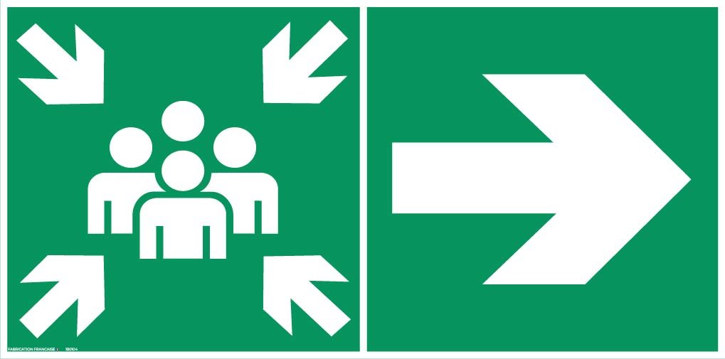 • Ce panneau indique précisément le point de rassemblement à rejoindre en cas d’évacuation. Il assure une orientation rapide du public et facilite la gestion des flux en situation d’urgence. Un élément essentiel pour tout établissement recevant du public.