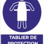 Signalétique : Texte “Tablier de protection obligatoire” + pictogramme normalisé (rond bleu avec tablier)