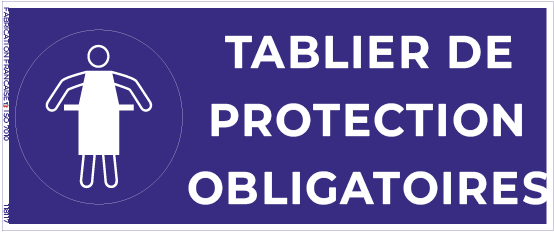 • Signalétique : Texte “Tablier de protection obligatoire” + pictogramme normalisé (rond bleu avec tablier)