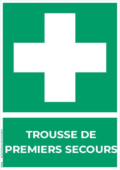 • Signalétique : Pictogramme normalisé “croix de secours” + texte “Trousse de premiers secours”